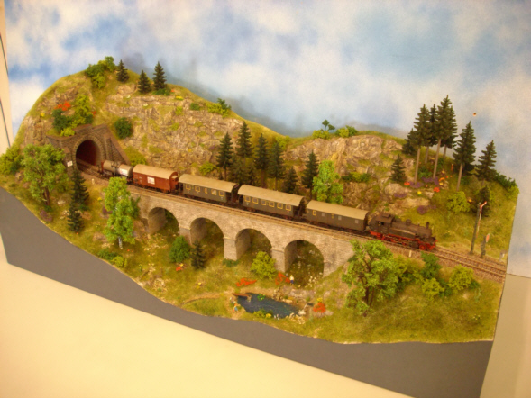 Auf Wunsch kann auch eine Hintergrundkulisse befestigt werden. Das Diorama kann auch als Funktionsmodell mit der erforderlichen Elektrik und Steuerung ausgestattet werden.