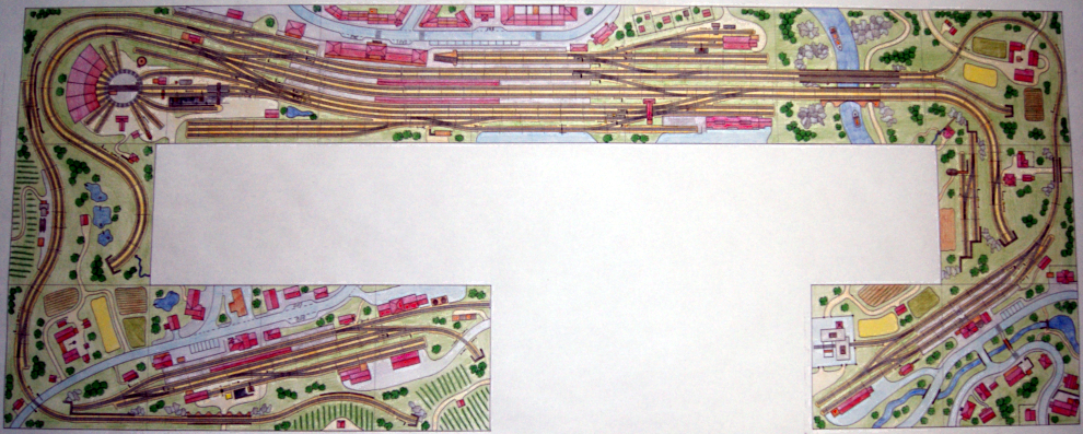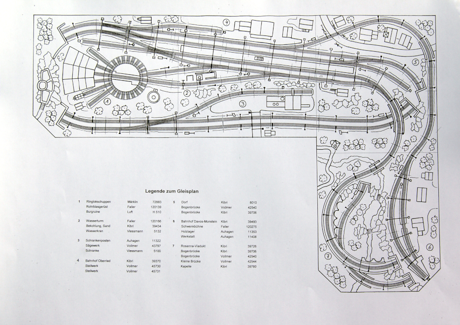 Auf Wunsch die Erweiterung mit dem Landschaftsplan (evtl. auch in Farbe), und des Trassenplans am Zeichenbrett. Sie bekommen eine Stückliste der Gleise sowie eine Auflistung der Gebäude beim Landschaftsplan.