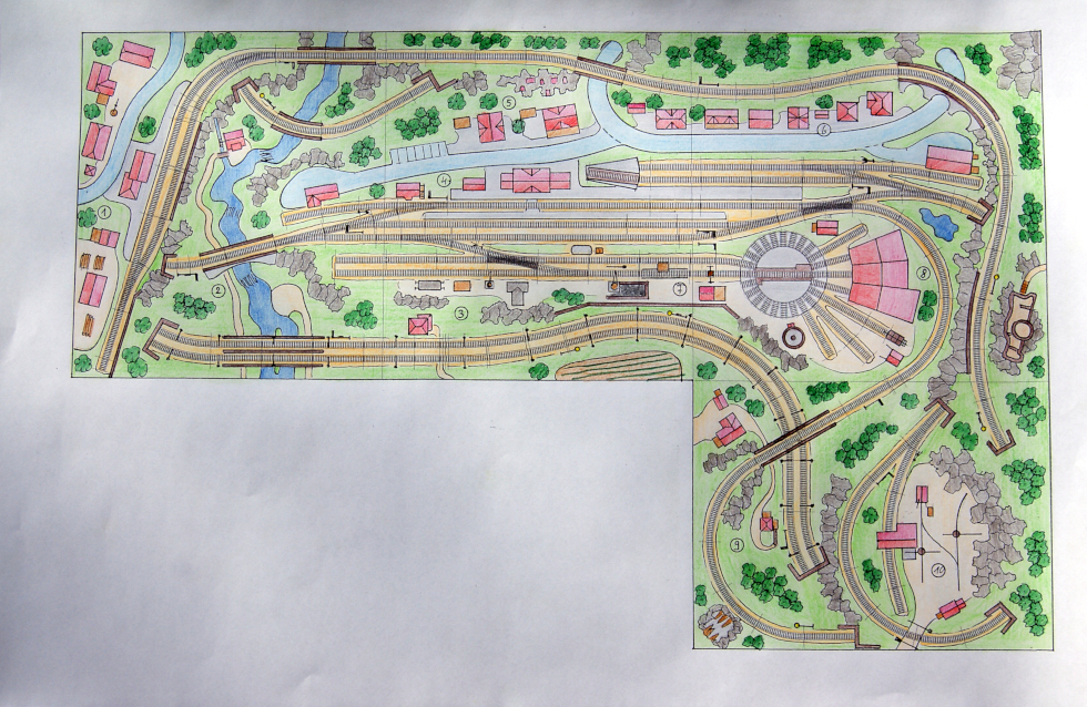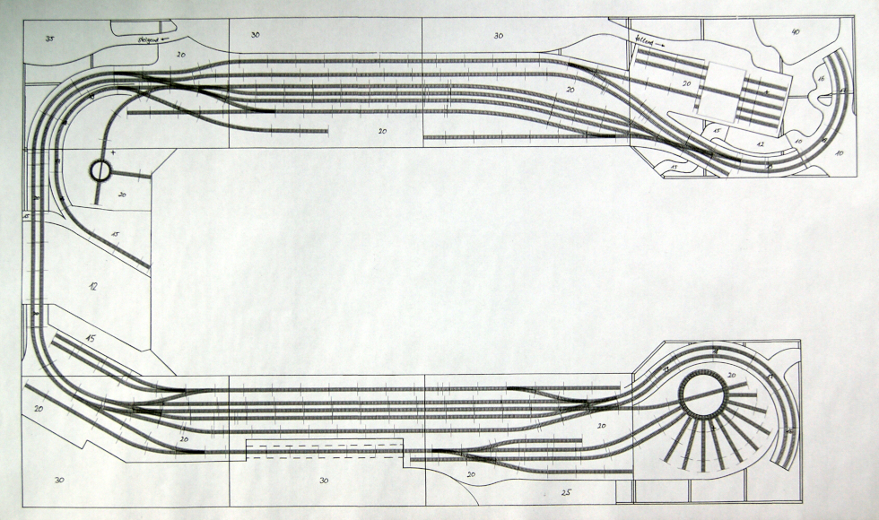 Grundlage für die Gleisplanung ist Ihr (ein) Entwurf mit den wichtigsten Abmessungen. Hier gilt die Regel, je mehr Angaben sie machen (können), desto genauer wird mein Gleisplan Ihren Vorstellungen entsprechen.