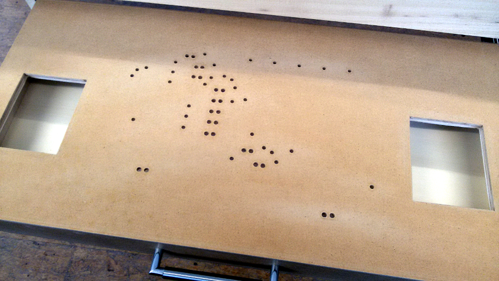 Das Sperrholzgerippe wird mit Kunststoffgewebe überzogen, worauf anschließend die eigentliche Geländehaut aus Modellgips entsteht. Alle Felsen werden ausschließlich aus Modellgips modelliert und mit Dispersionsfarbe, wie das übrige Gelände auch, nachbehandelt. Brücken, Tunnelportale, Mauern und spezielle Gebäude bestehen Teilweise aus Sperrholz und werden mit Polystyrol-Platten verkleidet bzw. aus Gips gegossen.