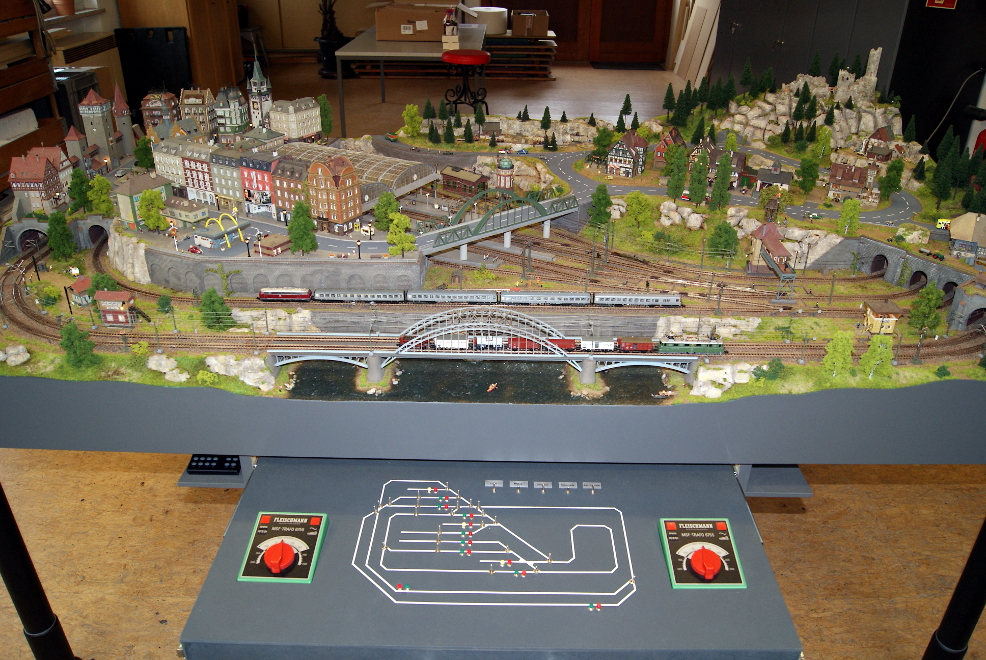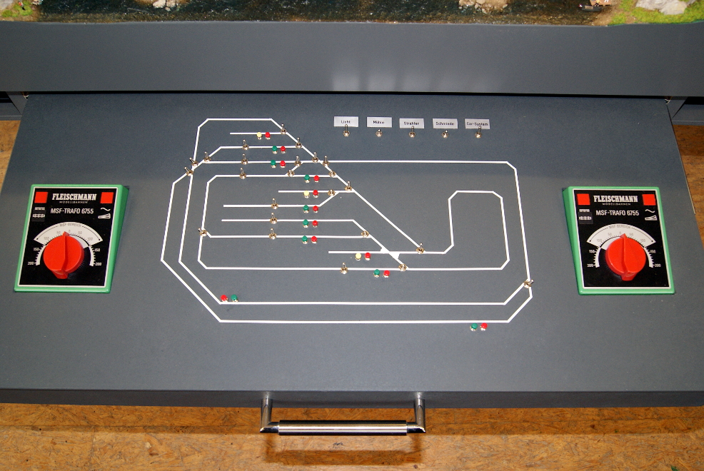 Ihre Anlage wird von mir elektrisch betriebsfertig ausgestattet. Von dem einfachen Anschluss der Magnetartikel an entsprechende Schalter oder Taster und des Fahrtransformators bis zur modernen Digitalsteuerung mit Gleisbildstellwerk kann ich Ihren Ansprüchen gerecht werden. Ich rüste Ihre Anlage mit allen gängigen Anlagensteuerungen und Gleisstellpulten aus. Auch alle Gebäude auf der Anlage werden mit Beleuchtung ausgestattet. Auf Bahngelände und an Straßen werden ebenfalls Beleuchtungsartikel aufgestellt und installiert.